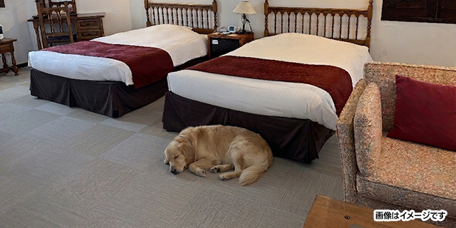 これまで制限していたワンちゃんの寝室利用を解禁。愛犬と同じ空間で過ごすことで、より安心感のある滞在をお届けします。