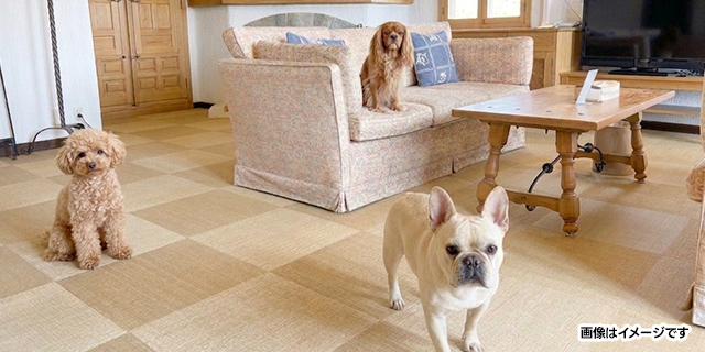 ワンちゃんの足腰への負担を軽減するため、滑り防止加工を施した専用床材「東リ ファブリックタイル」を採用。室内でも安心して過ごせる環境を整えました。